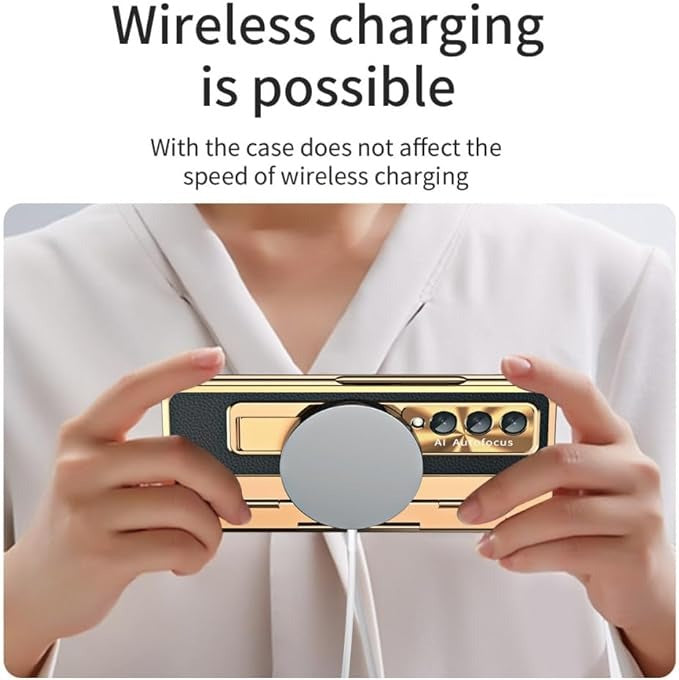 Upgrade your Galaxy Z Fold with the EliteGuard Luxe Hybrid Case — a perfect fusion of luxury and durability. Designed for modern sophistication, this case features a metallic gold frame with premium leather texture, offering full 360° protection including the hinge. Every detail is crafted to enhance grip, guard against drops, and make your foldable phone look stunning.